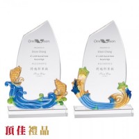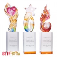 竹工坊-彩虹琉璃 水晶獎牌 琉璃獎座 合成石 金屬獎座