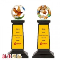 竹工坊-彩虹琉璃 水晶獎牌 琉璃獎座 合成石 金屬獎座