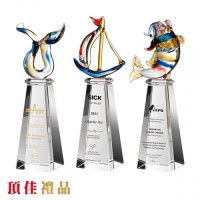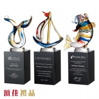 竹工坊-彩虹琉璃 水晶獎牌 琉璃獎座 合成石 金屬獎座